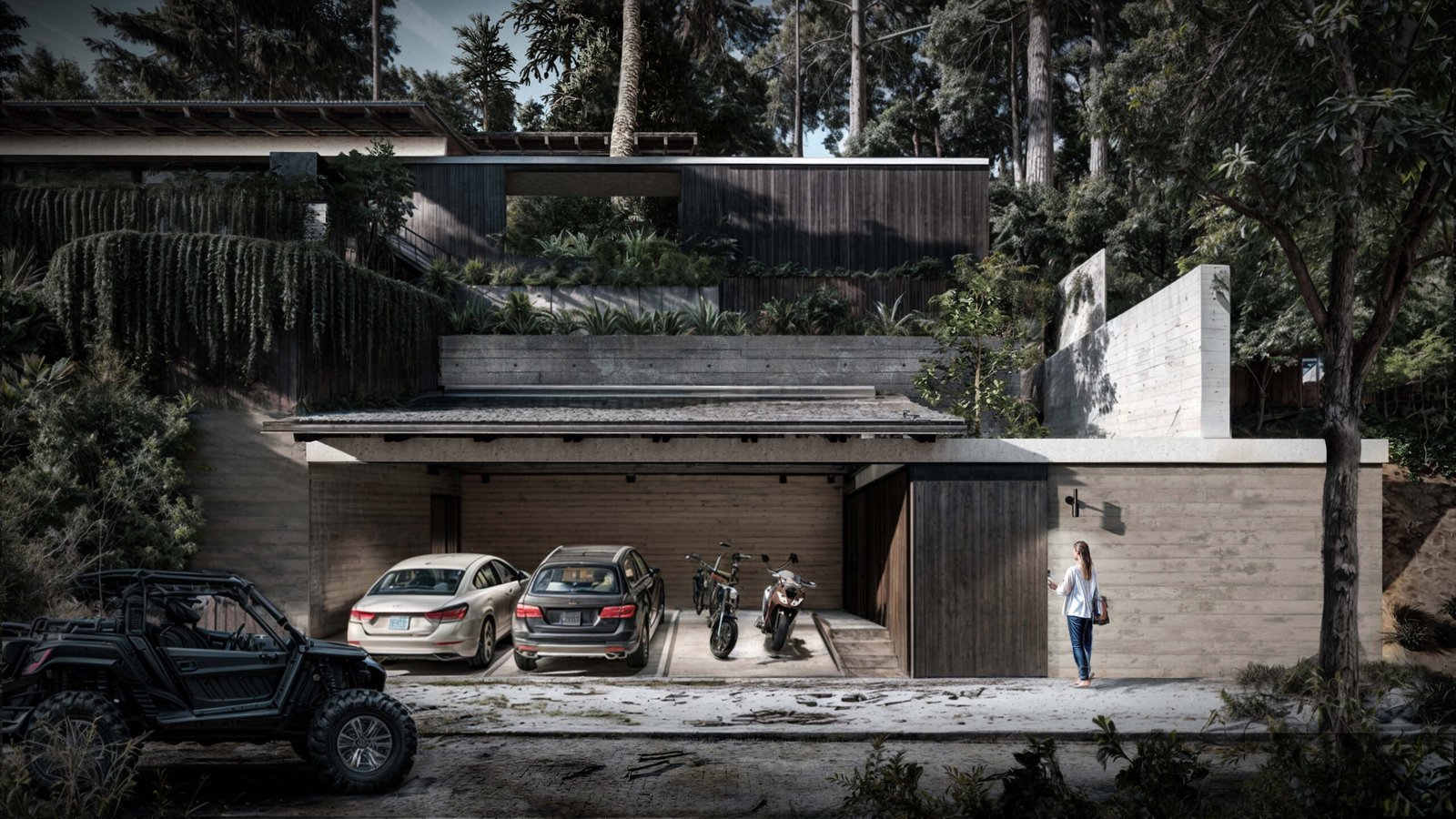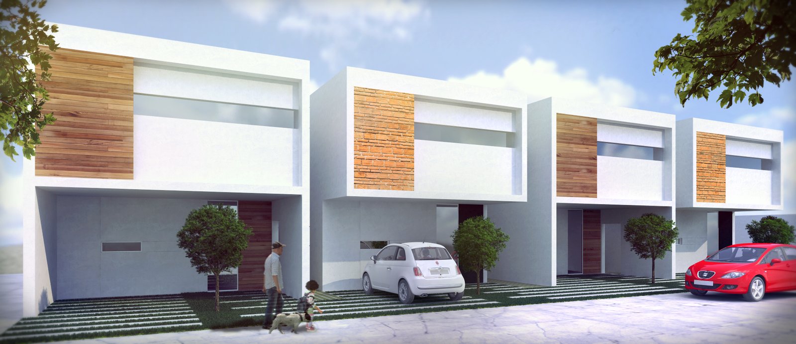 Cada villa se compone de tres recámaras con baños y closets en el nivel superior, aprovechando las mejores vistas hacia el bosque y parte del lago de Valle de Bravo. En el nivel intermedio se encuentran las áreas de convivencia y servicios como; family room, sala, comedor, cocina, recámara de servicio, lavandería y las áreas exteriores que consideran una gran terraza frente a las áreas de convivencia y una pequeña alberca entre los grandes árboles. Finalmente, en la parte inferior de la casa y en contacto con la calle, se encuentra el vestíbulo principal conectado al estacionamiento y cuarto de máquinas. Las grandes escaleras contiguas al vestíbulo conectan ambos niveles.
